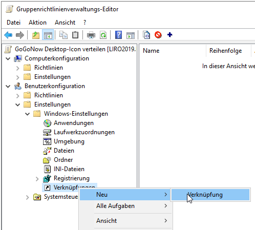 Um ein Icon auf den Desktops der Nutzer zu erzeugen sind zwei Schritte notwendig die über ein Gruppenrichtlinienobjekt (GPO) erreicht werden.